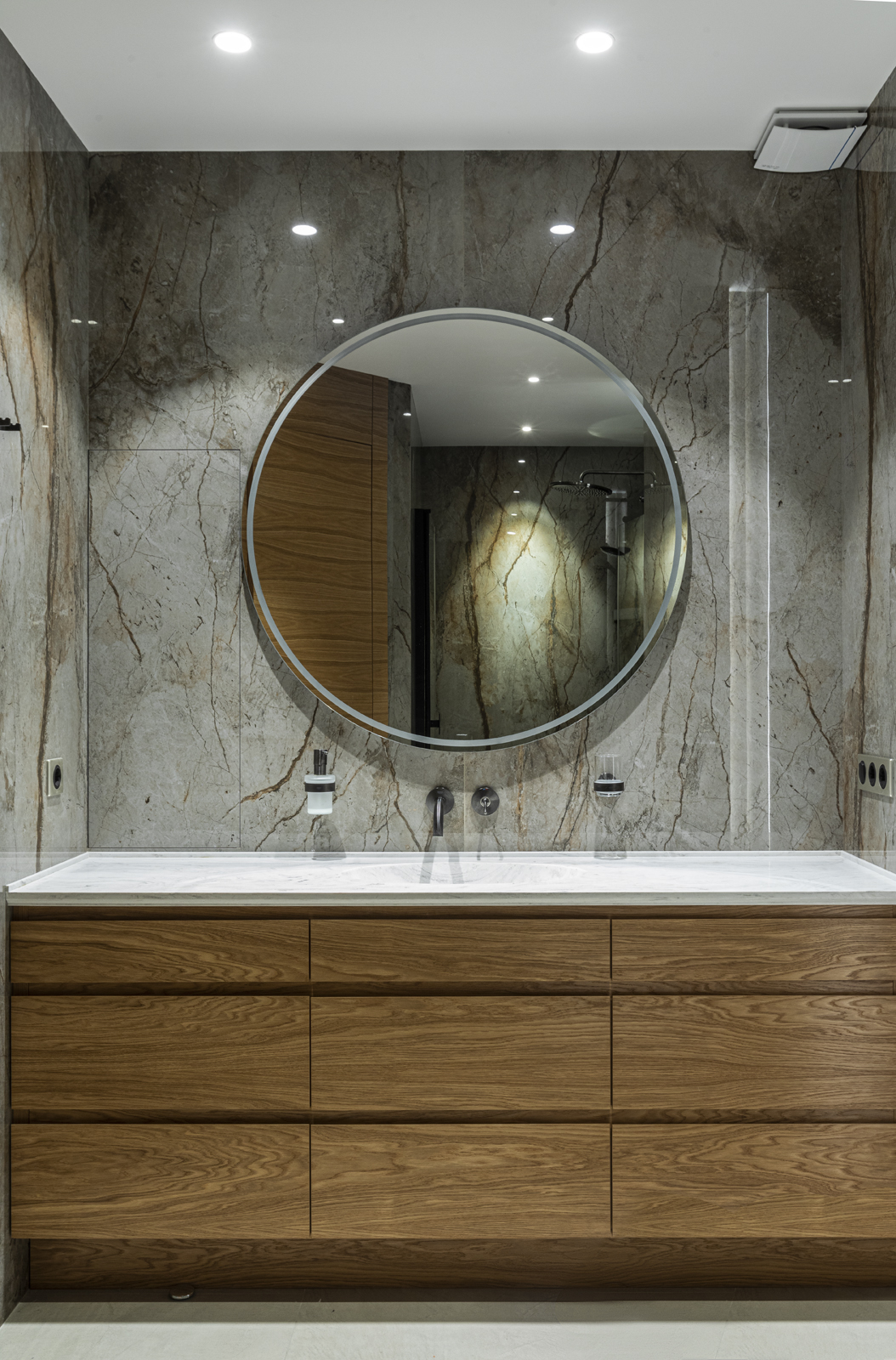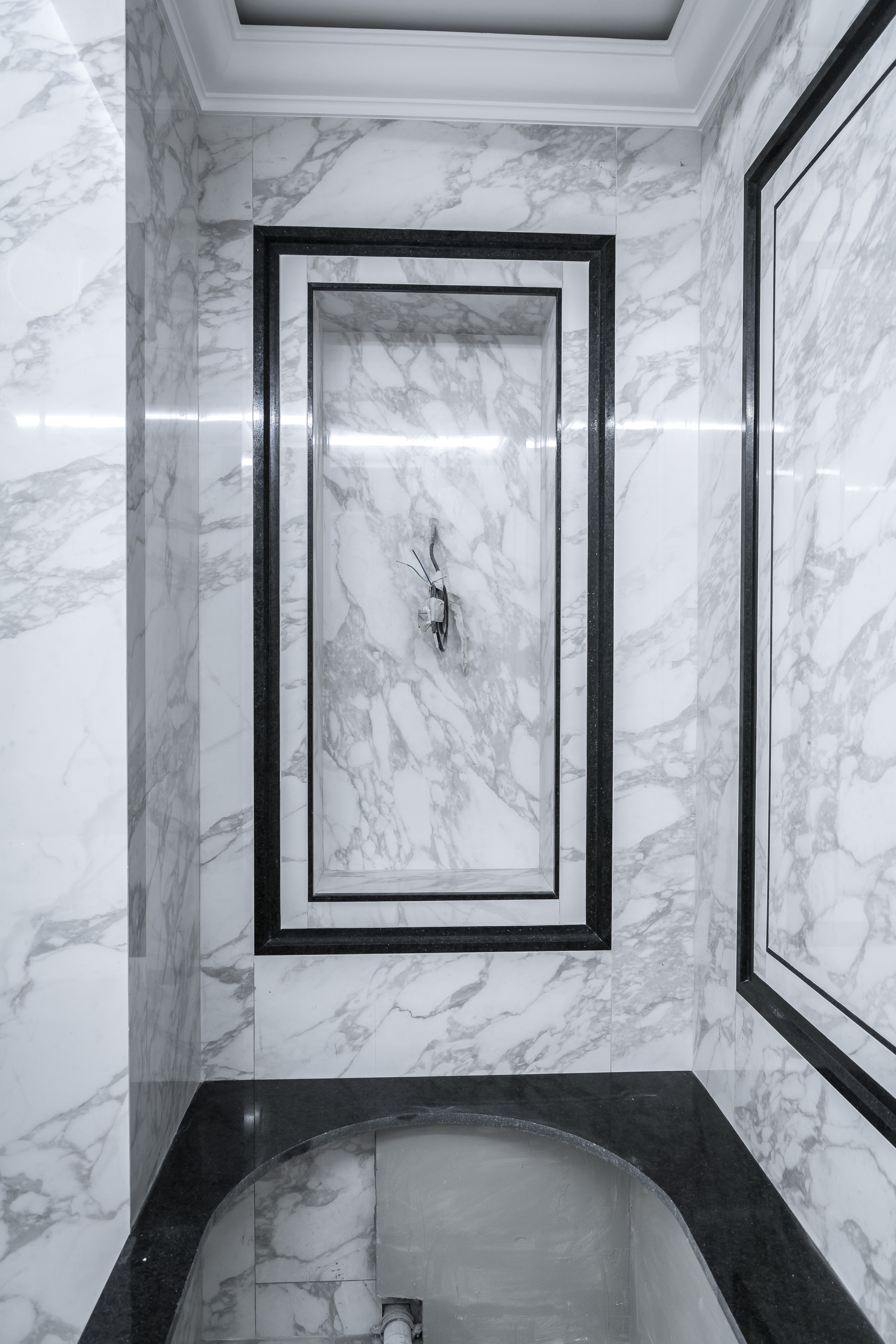 В этой коллекции отражена вся палитра природного камня – мрамор, оникс, травертин, сланец – богатая палитра позволяет выбрать самый выгодный вариант для украшения интерьера.